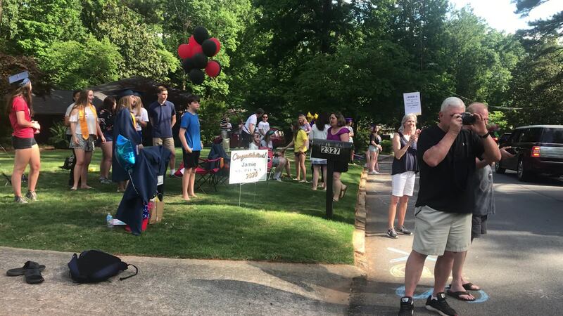 DEKALB COUNTY, Ga. — A metro Atlanta neighborhood with at least five 2020 graduates at two different schools found a heartfelt way to honor their big milestone with them Saturday.