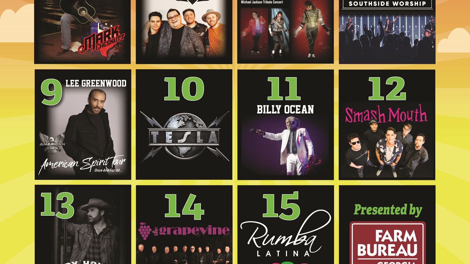 “We are so excited to announce all of our FREE concerts for the 2023 Georgia National Fair! All concerts will begin at 7:30 PM on the Georgia National Stage except for Southside Worship at 7:00 PM and Rumba Latina at 6:00 PM,” event organizers announced. “There is music for everyone! Country, rock and roll, worship and more, we’ve got music for every member of your family!”