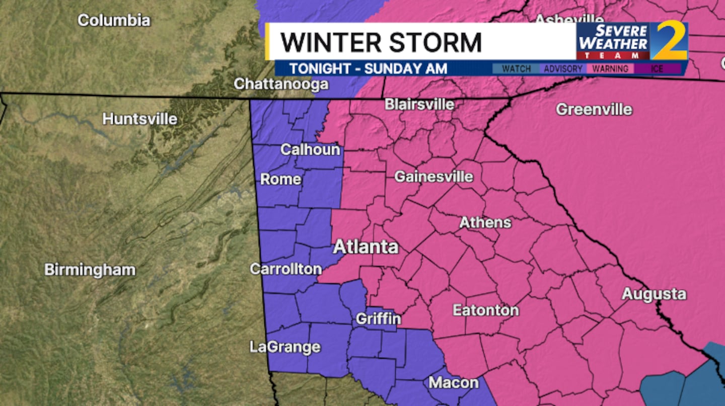 Kemp signed the executive order on Friday for north and central Georgia that will last through next Friday. A winter storm warning or winter weather advisory are in effect for most of the area.