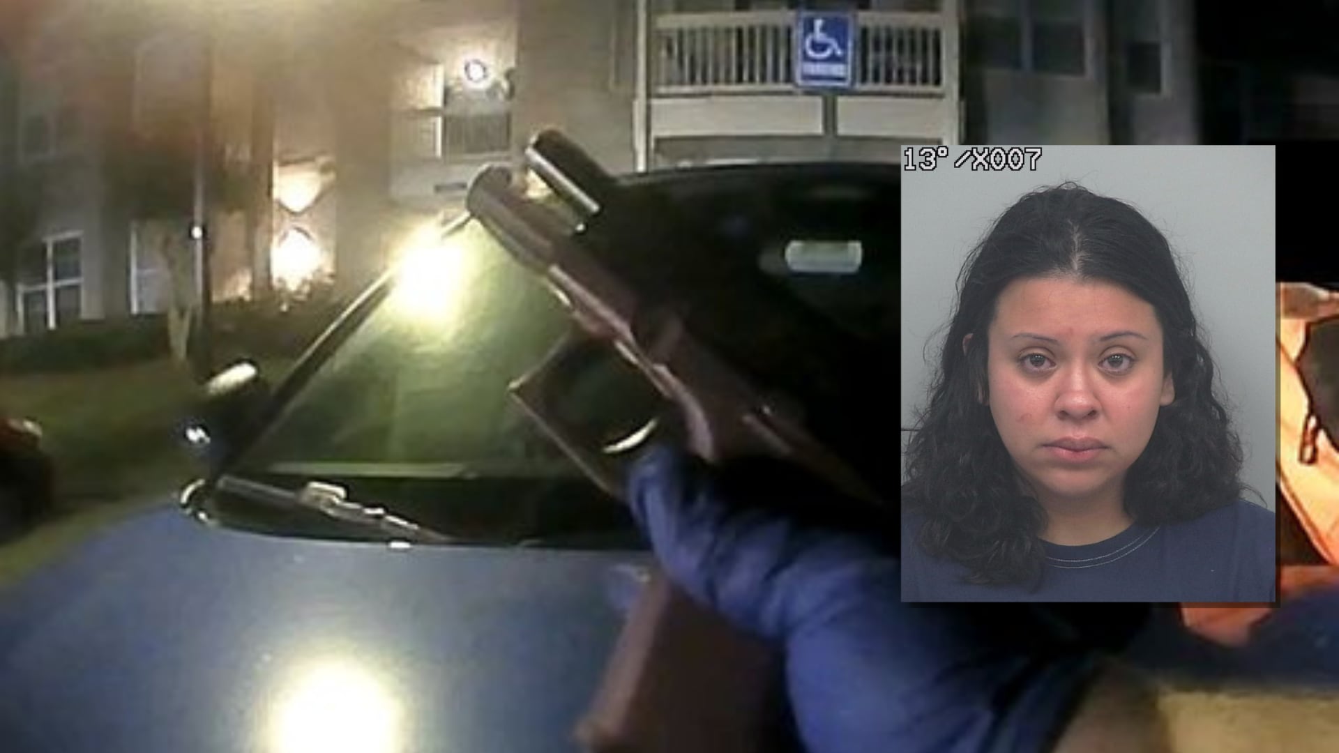 At first, the suspect told officers she shot the gun into the air. Later, she said they were “tussling” in the grass before she discharged the gun.