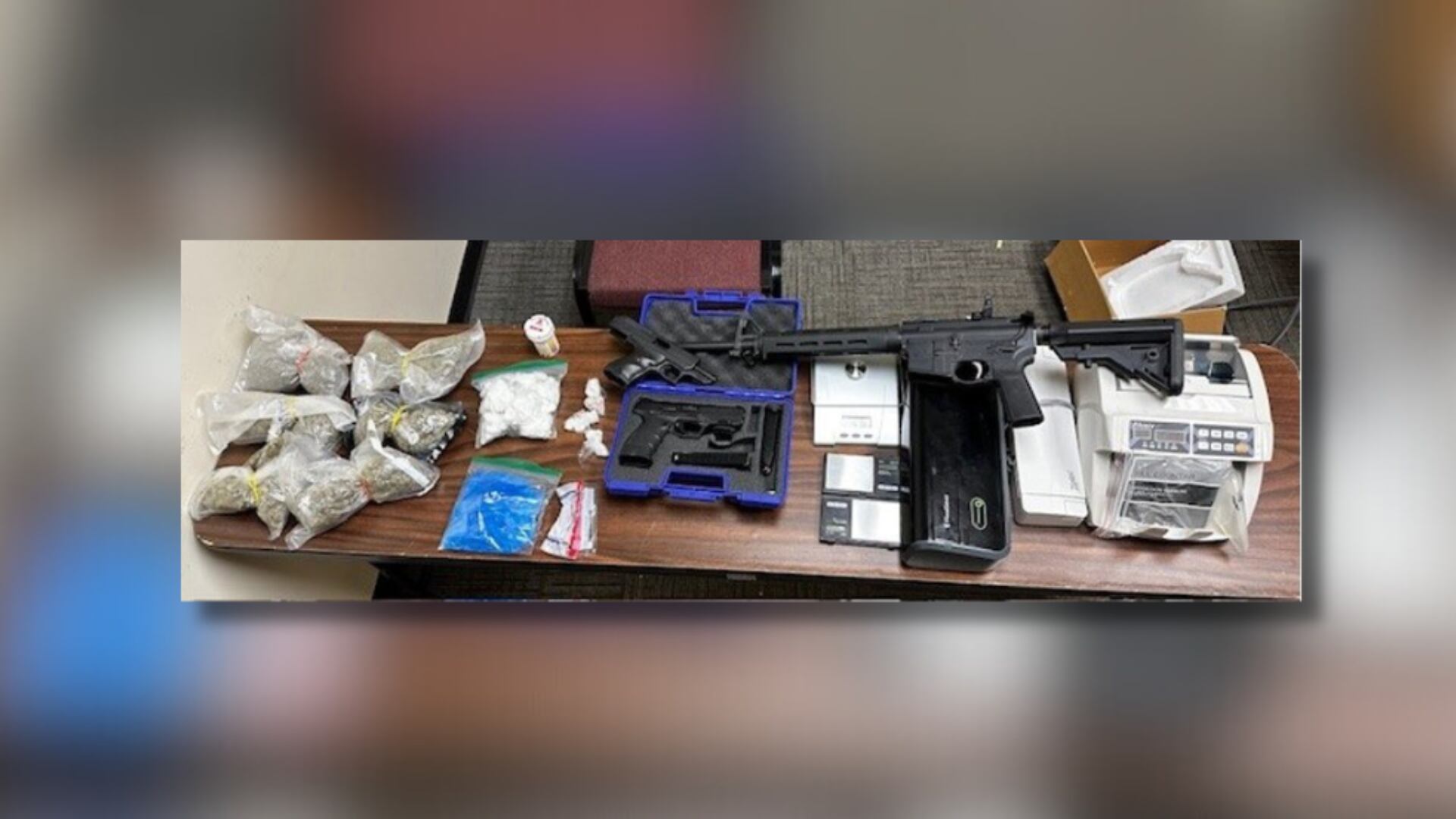 Agents found 500.25 grams of marijuana, 11.1 grams of fentanyl, and 235.5 grams of cocaine. Officials also seized two handguns, a rifle, a money counter, a vacuum sealer, and three measuring scales.