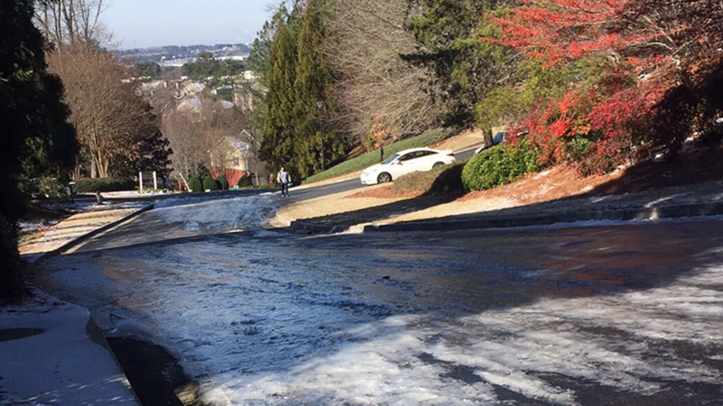 This weekend's storm brought more ice than snow to many metro Atlanta areas. Some of that ice melted during the days on Saturday and Sunday, but Monday morning, many roads in the northern metro still had icy patches.