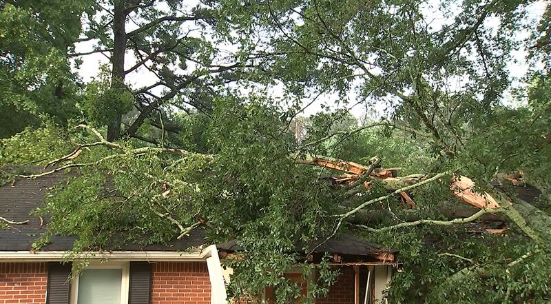 The storm also knocked down a tree at the church next door and onto a home and an SUV on nearby Macon Drive.