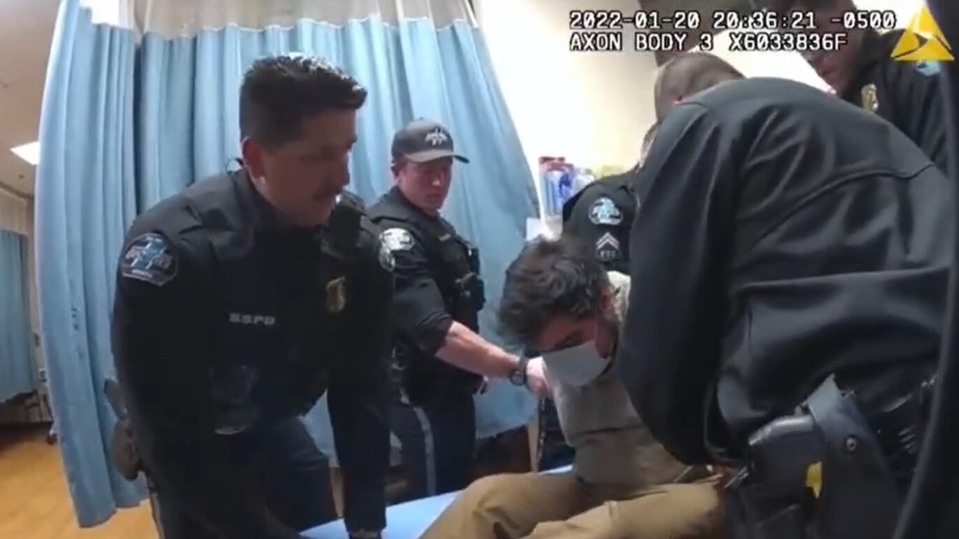 Police released bodycam video of officers taking 26-year-old Nathan Louis Highsmith of Canton, Ga. into custody at Emory Saint Joseph’s Hospital Thursday night. They had responded to a call of a suspicious vehicle in the parking lot.