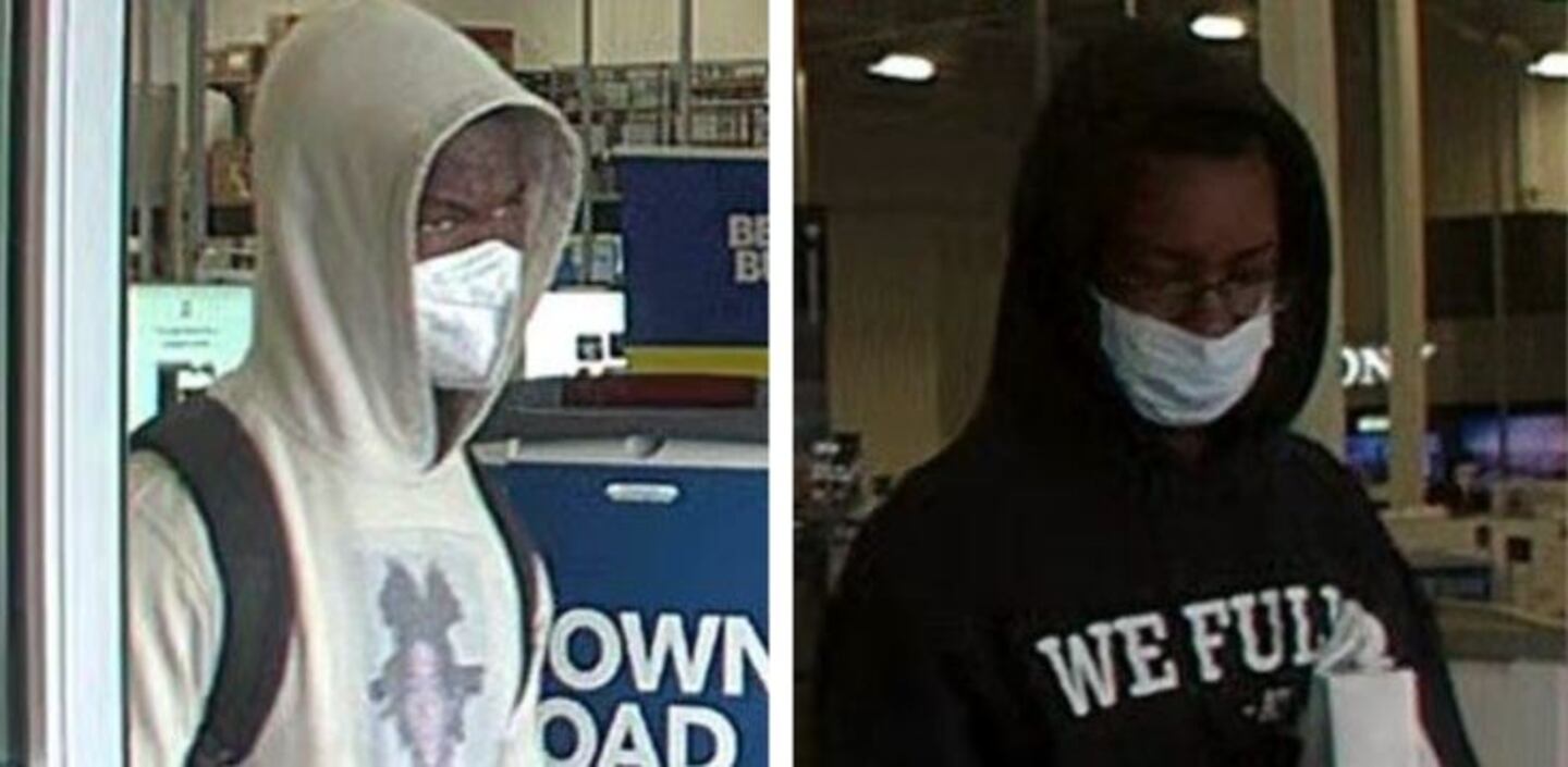 Police say the men are wanted for allegedly spending $11,000 at Best Buy using stolen credit cards.
