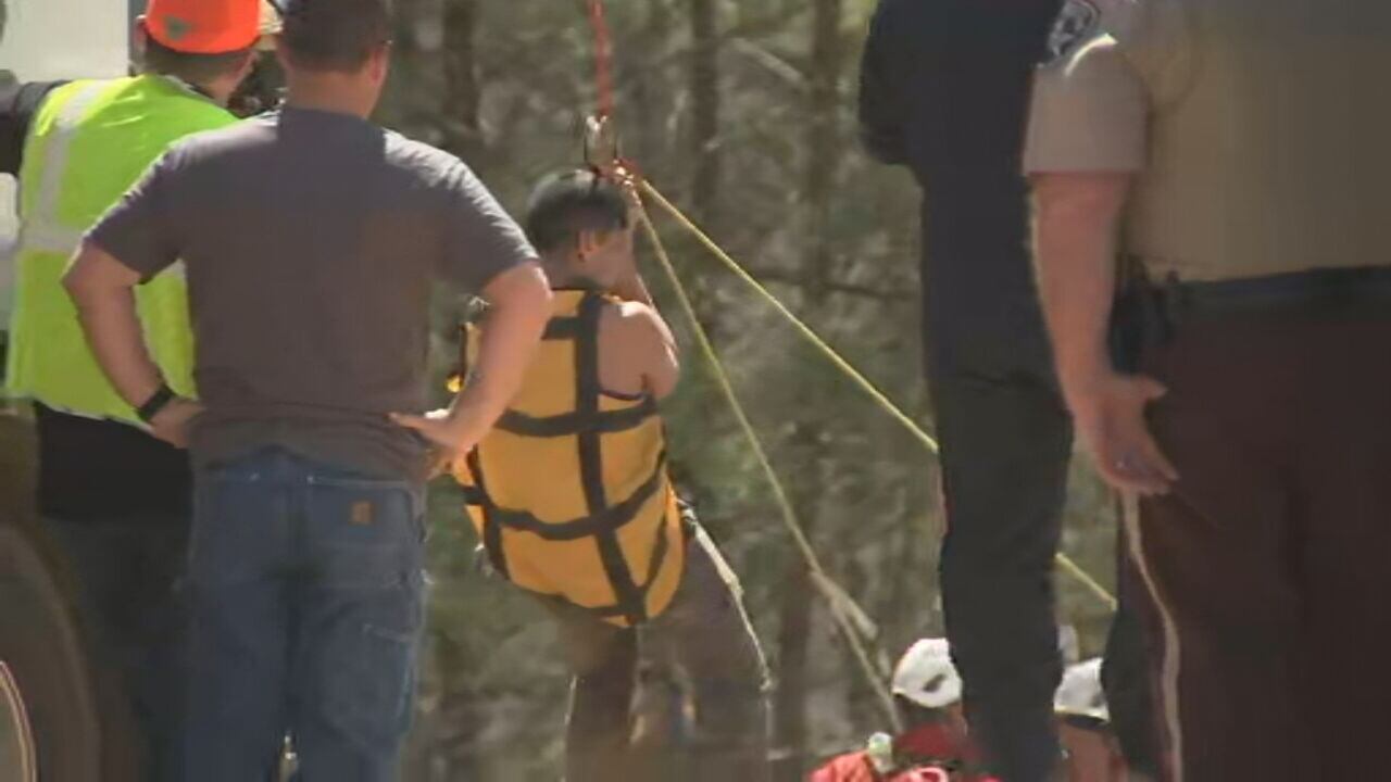 After about three and a half hours, crews were able to pull the man to safety. NewsChopper 2 showed the moments he was put into the back of an ambulance, which took him to a medic helicopter.