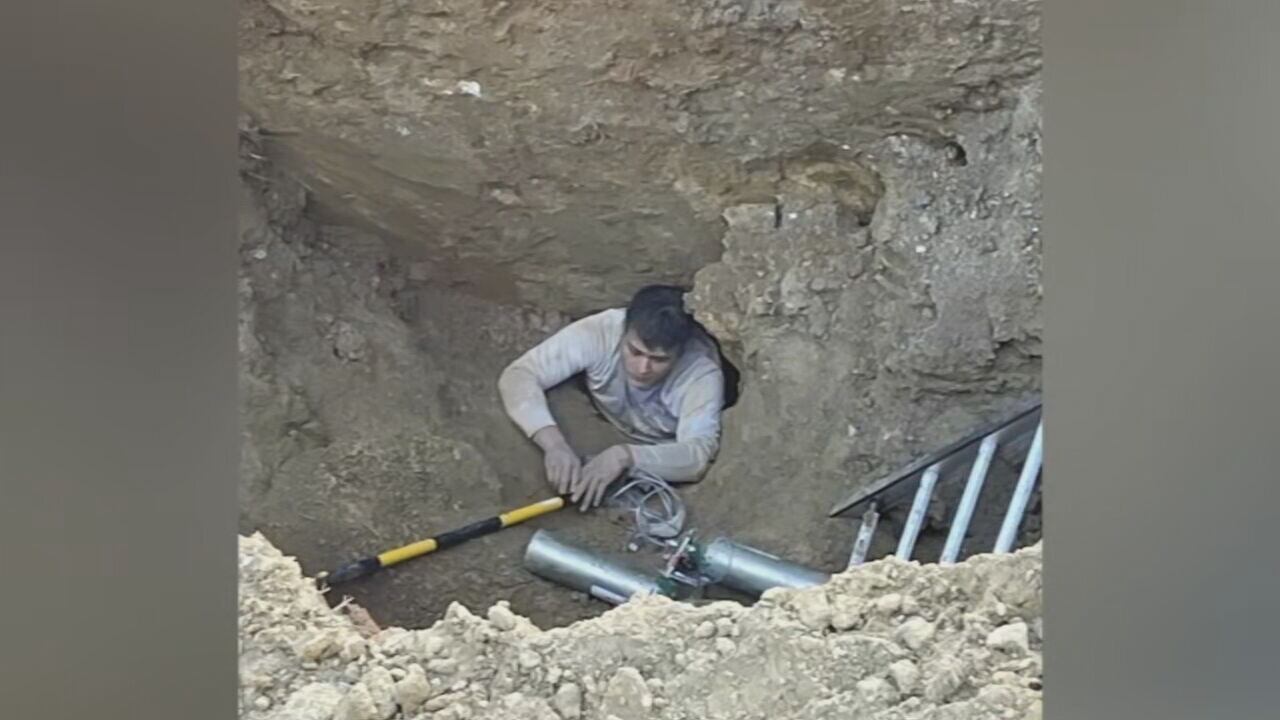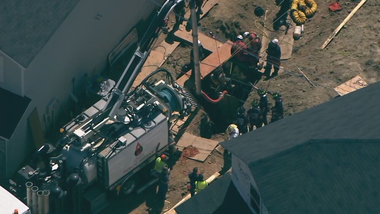 Pictures from the scene show the man stuck in a hole midway up to his chest at the bottom of the trench.
