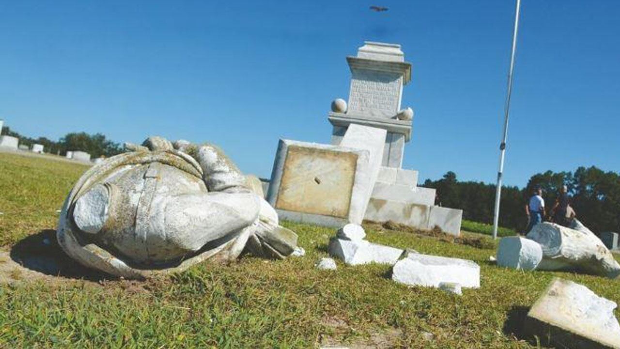 The statue, which was virtually destroyed, was erected in 1909 and moved to the city cemetery in the 1950s, according to the newspaper.