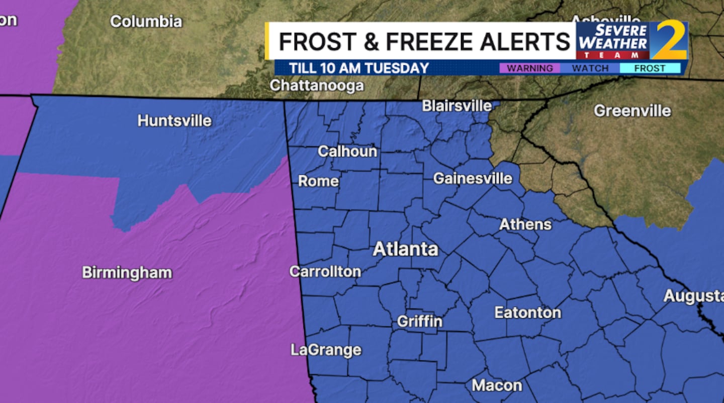 A freeze watch has been issued for Monday night into Tuesday with temperatures dropping into the 20s Tuesday morning.