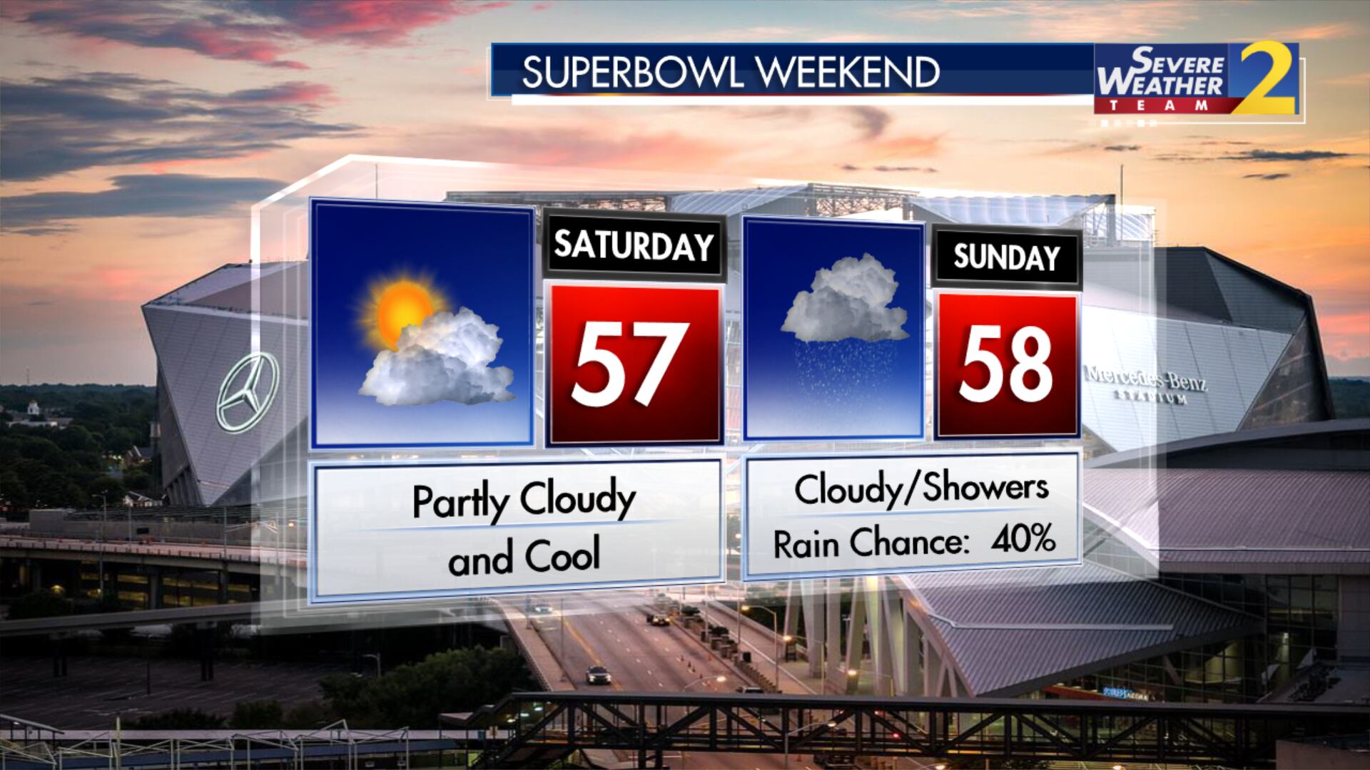 Severe Weather Team 2 meteorologist Eboni Deon says Super Bowl weekend will start off dry on Saturday with highs in the upper 50s.