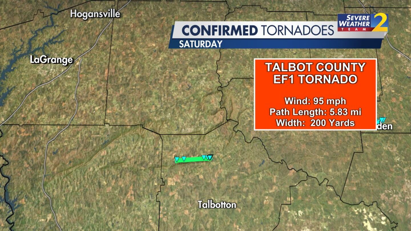 ATLANTA — The National Weather Service is sharing new details on three tornadoes that touched down in Georgia on Saturday.