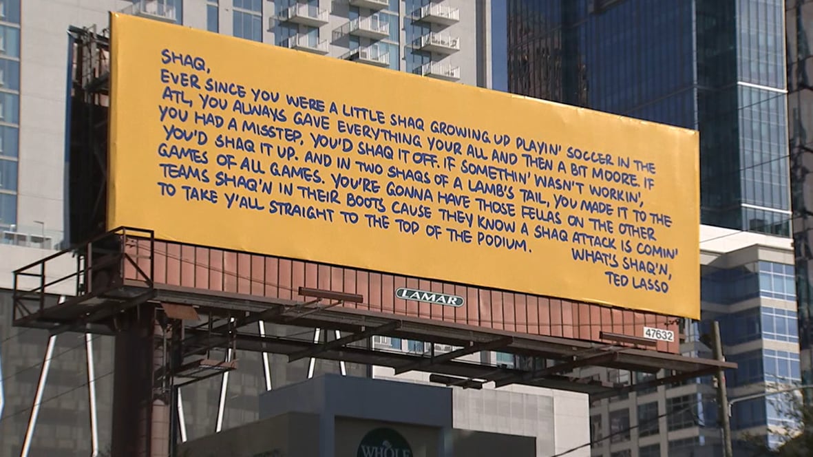 To celebrate the players, billboards from a popular TV show have been spotted all across the country and here in Georgia. The billboards have letters to the players from “Ted Lasso,” the title character played by Jason Sudeikis in the Apple TV series.