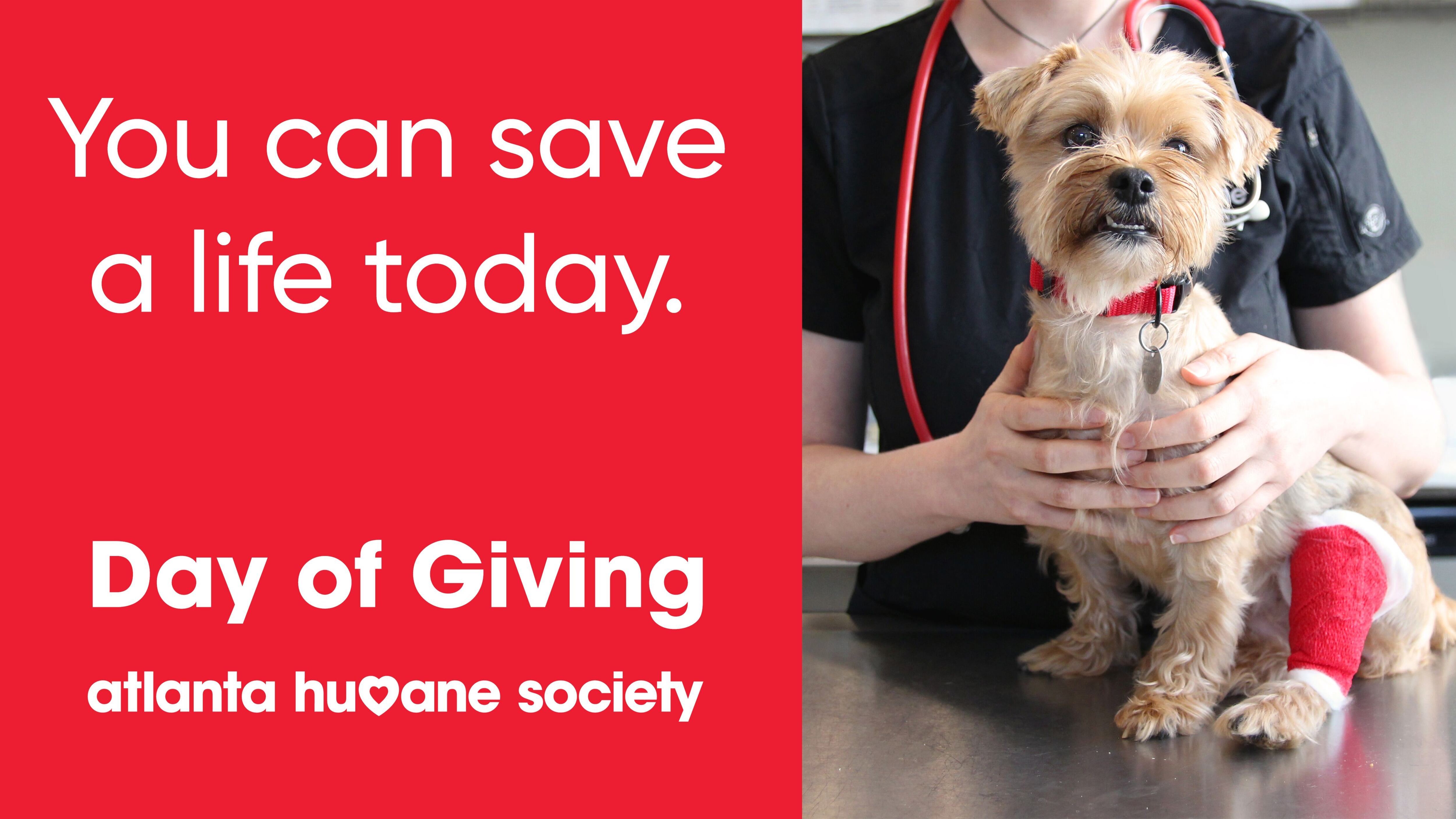 ATLANTA — Today is a big day for animals, as the Atlanta Humane Society seeks to save thousands of lives during its Day of Giving.