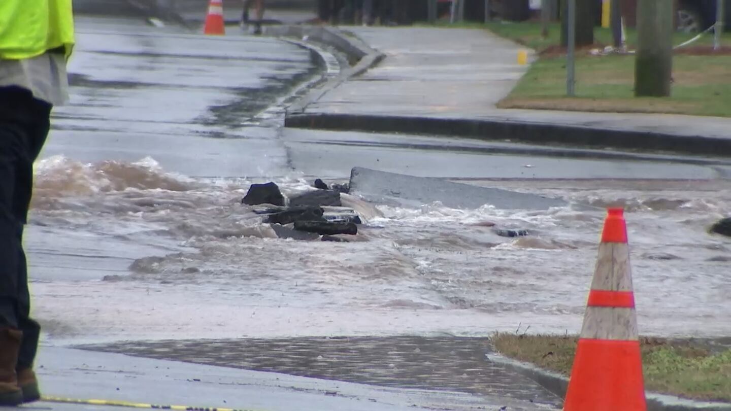 The 20-inch water main break happened in the 900 block of Clairemont Avenue. Officials said the main broke around 9 a.m. Sunday.