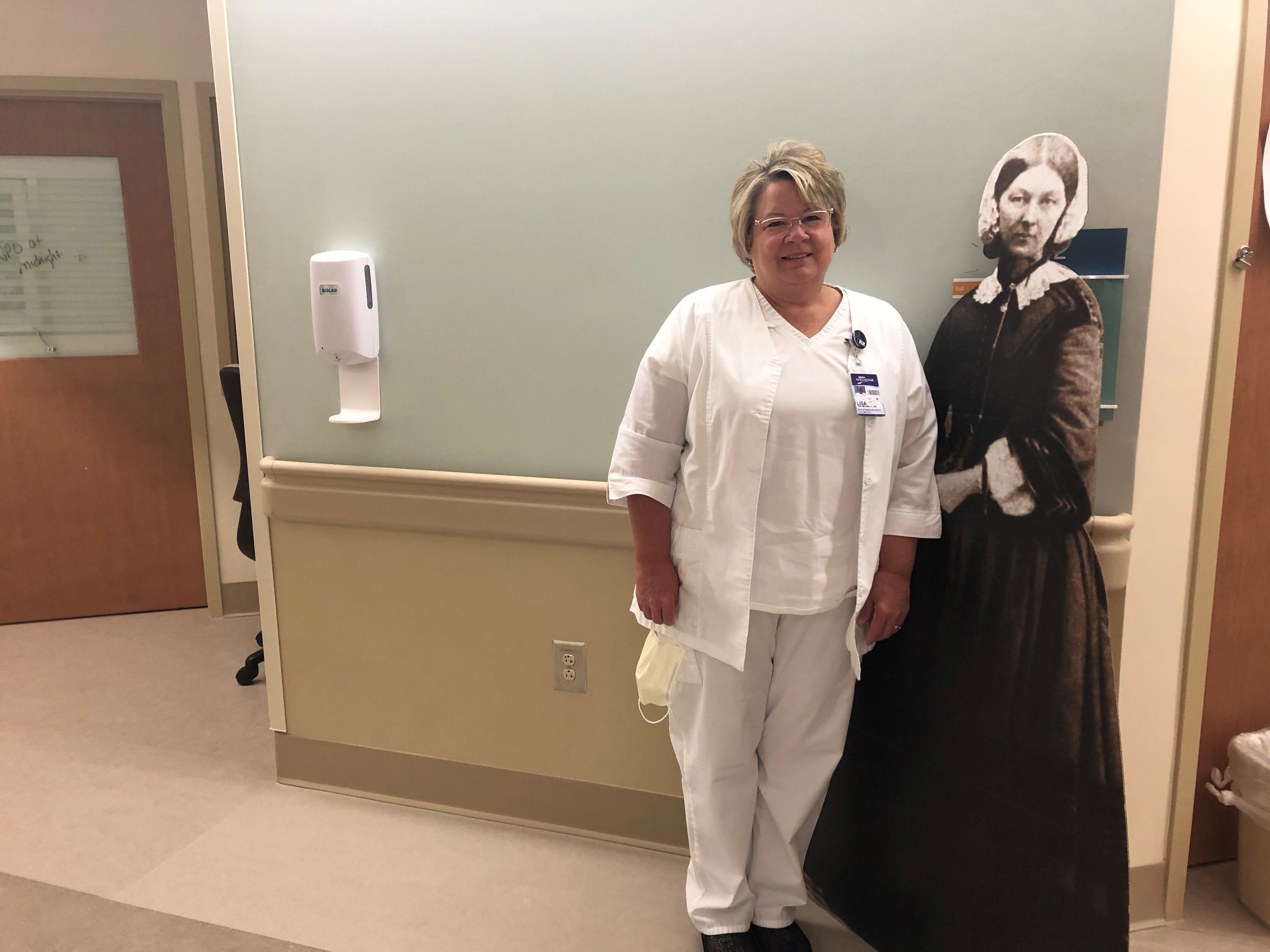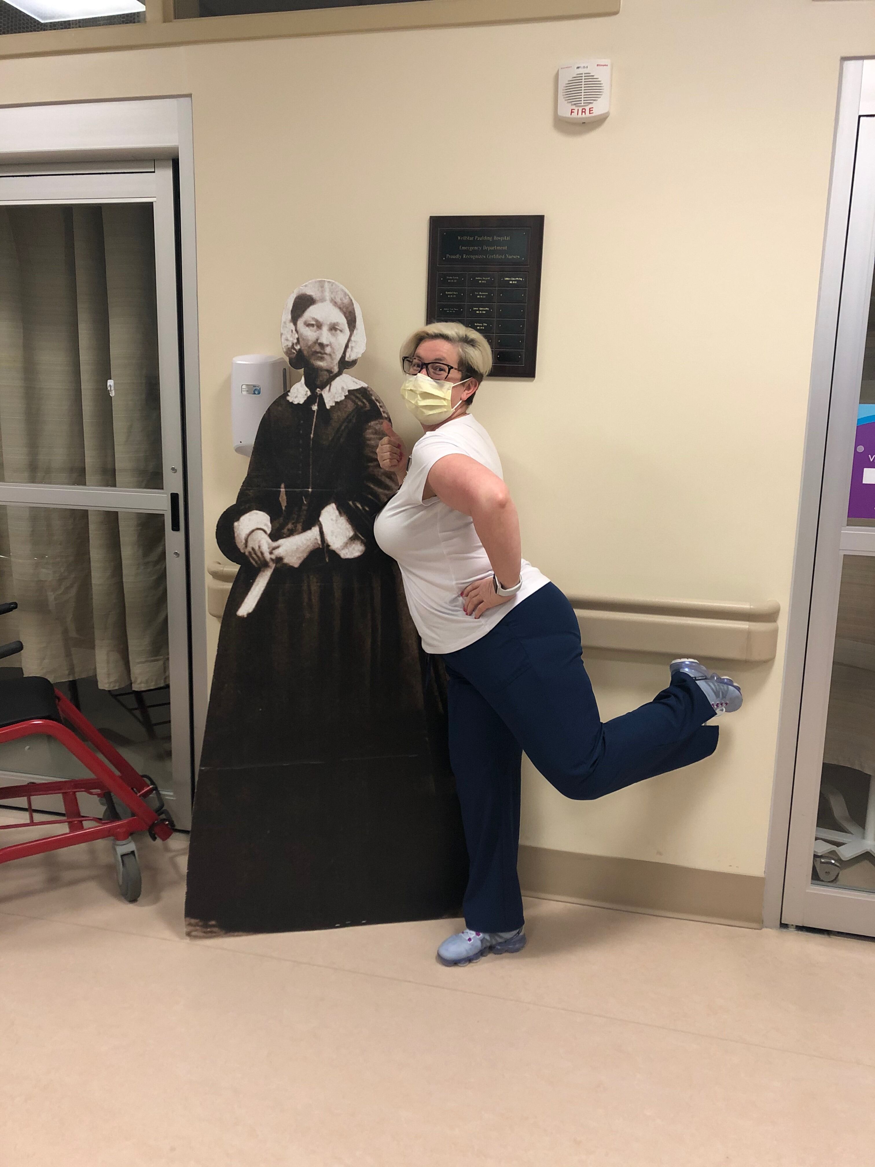 Wellstar Health Nurses Week Wellstar nurse poses with Florence Nightingale cutout.