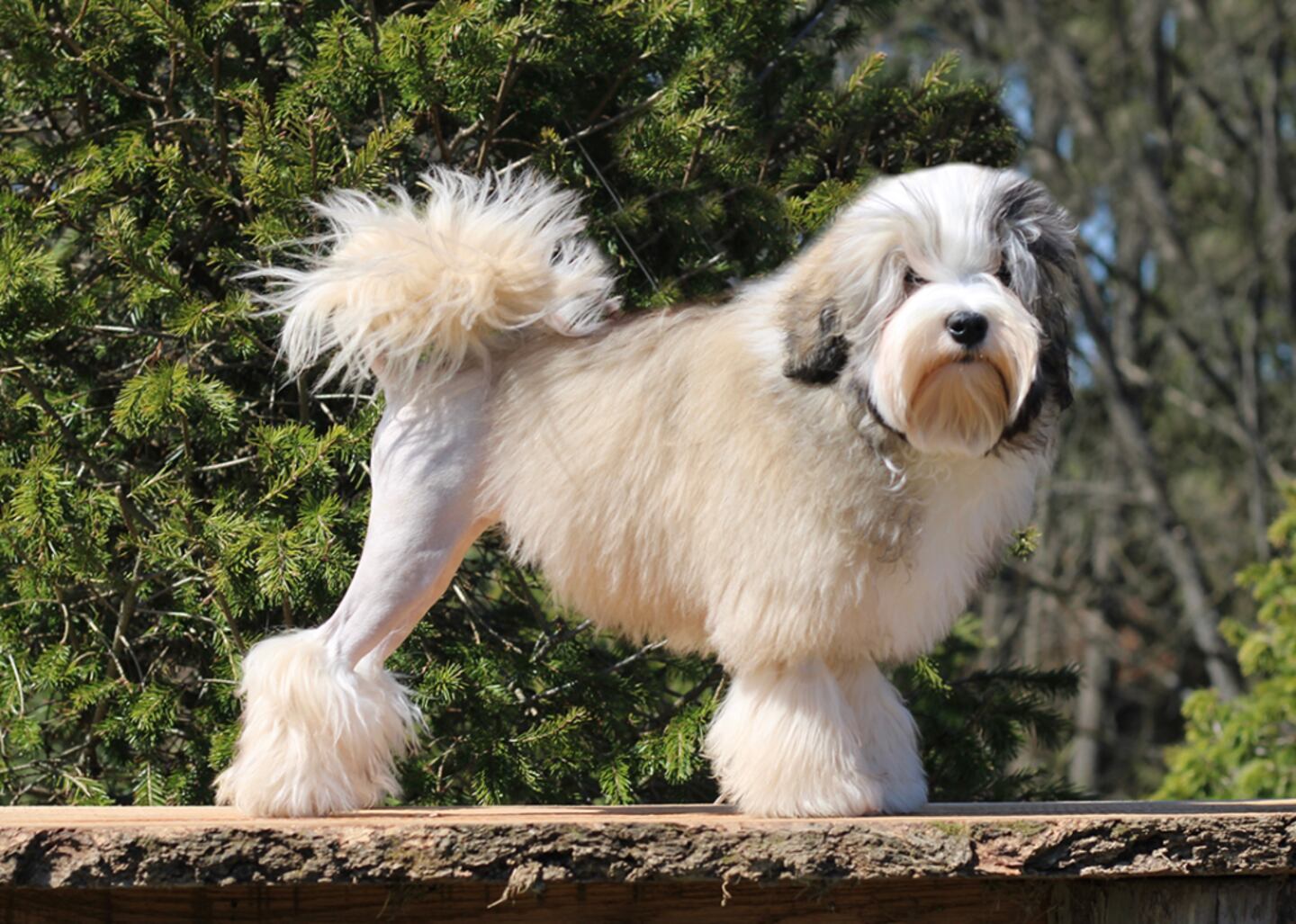 The Tibetan terrier, bred as companion dogs in Tibetan monasteries over 2,000 years ago, has an affectionate, easygoing personality that makes it adaptable to both city and rural living, especially in places that get snow. These canines' large, flat feet are uniquely suited to crossing snowy and mountainous terrain.