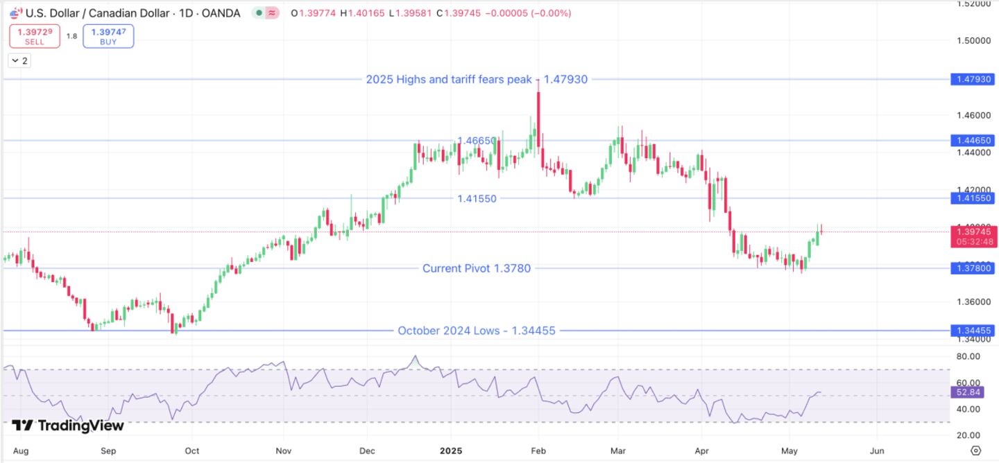 USD/CAD has been volatile in the past year, to say the least. Similar to the move seen in the DXY, the pair has seen a relentless rally with few corrections. The rally found its base after a double bottom in October 2024. Prices moved from 1.3445 to 1.4650, where they consolidated in a 2000 pip range between December 2024 and February 2025.