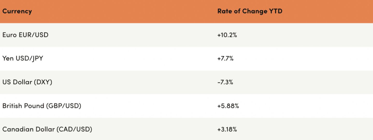 Major currency performance since 2025