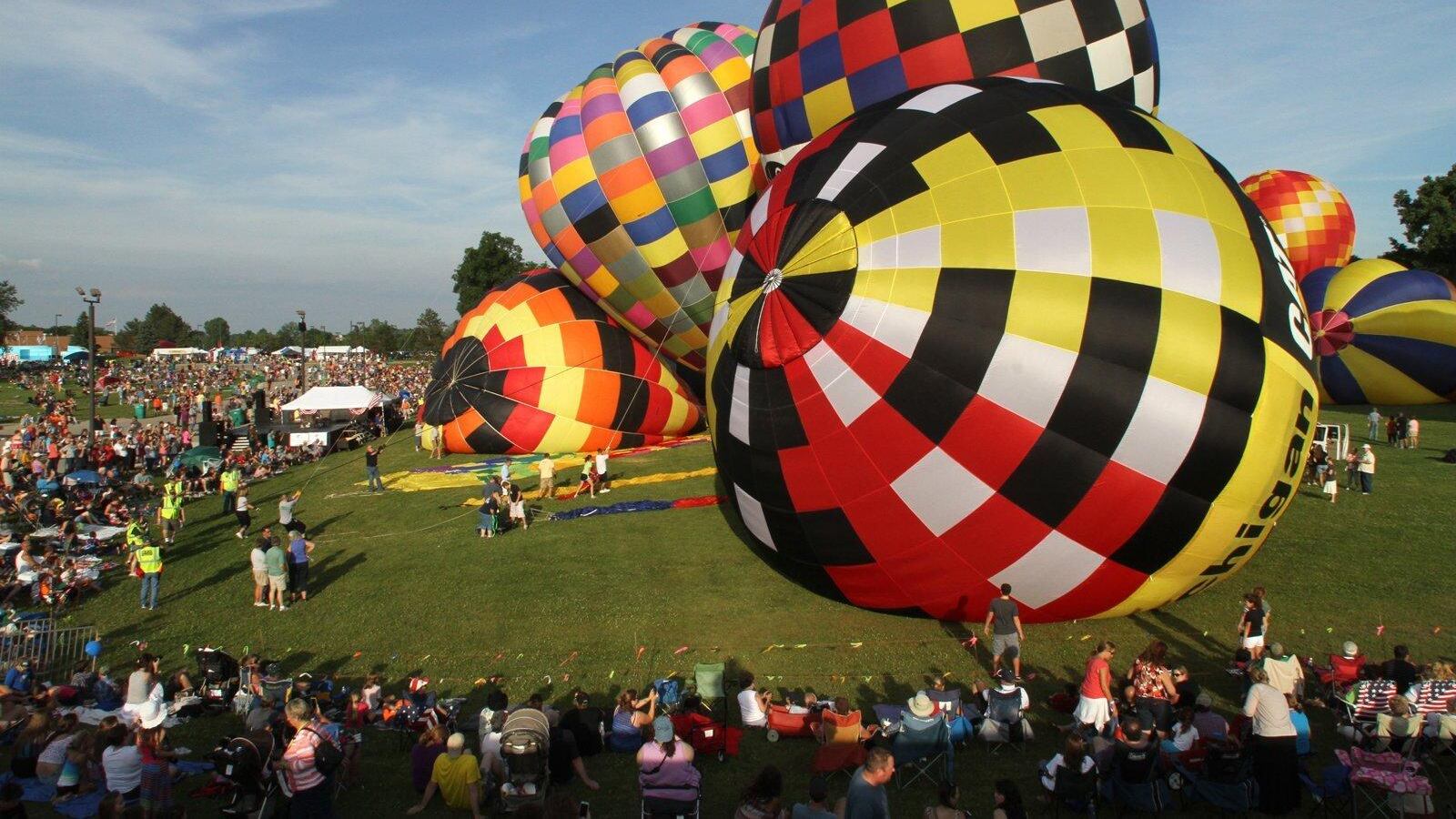 The three-day festival began Friday and is to wrap up Sunday. The balloons launch in the evening, but a fly-in to the launch site was scheduled from 6 a.m. to 8 a.m. Saturday and Sunday, according to the balloonfest website.