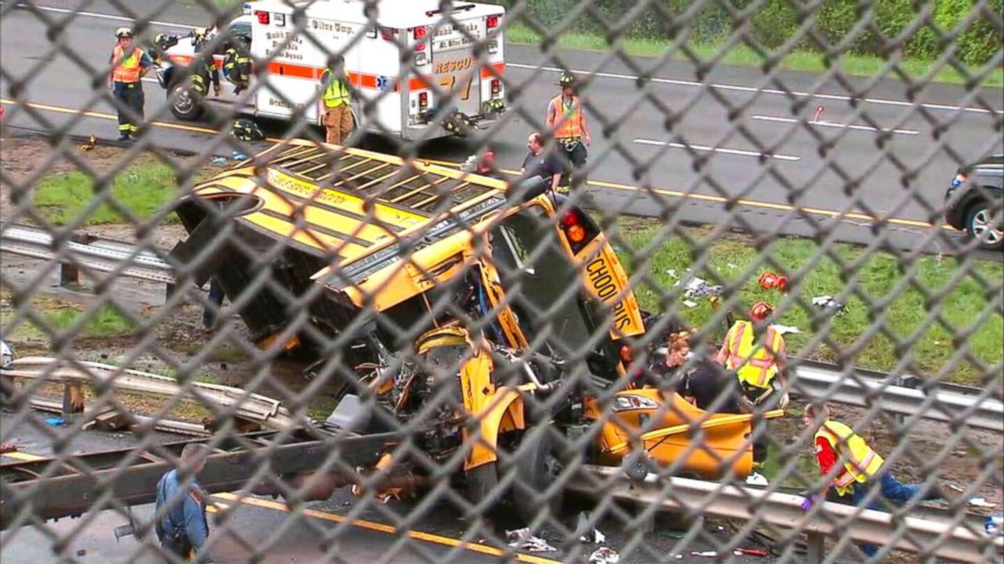 MOUNT OLIVE TOWNSHIP, N.J. — At least two people were killed when a school bus full of fifth-graders collided with a dump truck and slammed off a New Jersey highway this morning, two law enforcement officials told ABC News.