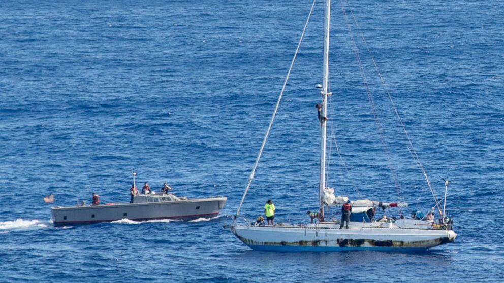 The Ashland reached the sailboat Tuesday morning, and after the craft was assessed as unseaworthy, Appel and Fuiaba were taken aboard. They were given medical checkups, food and berthing arrangements on the ship because they will remain on the Ashland until its next port of call.