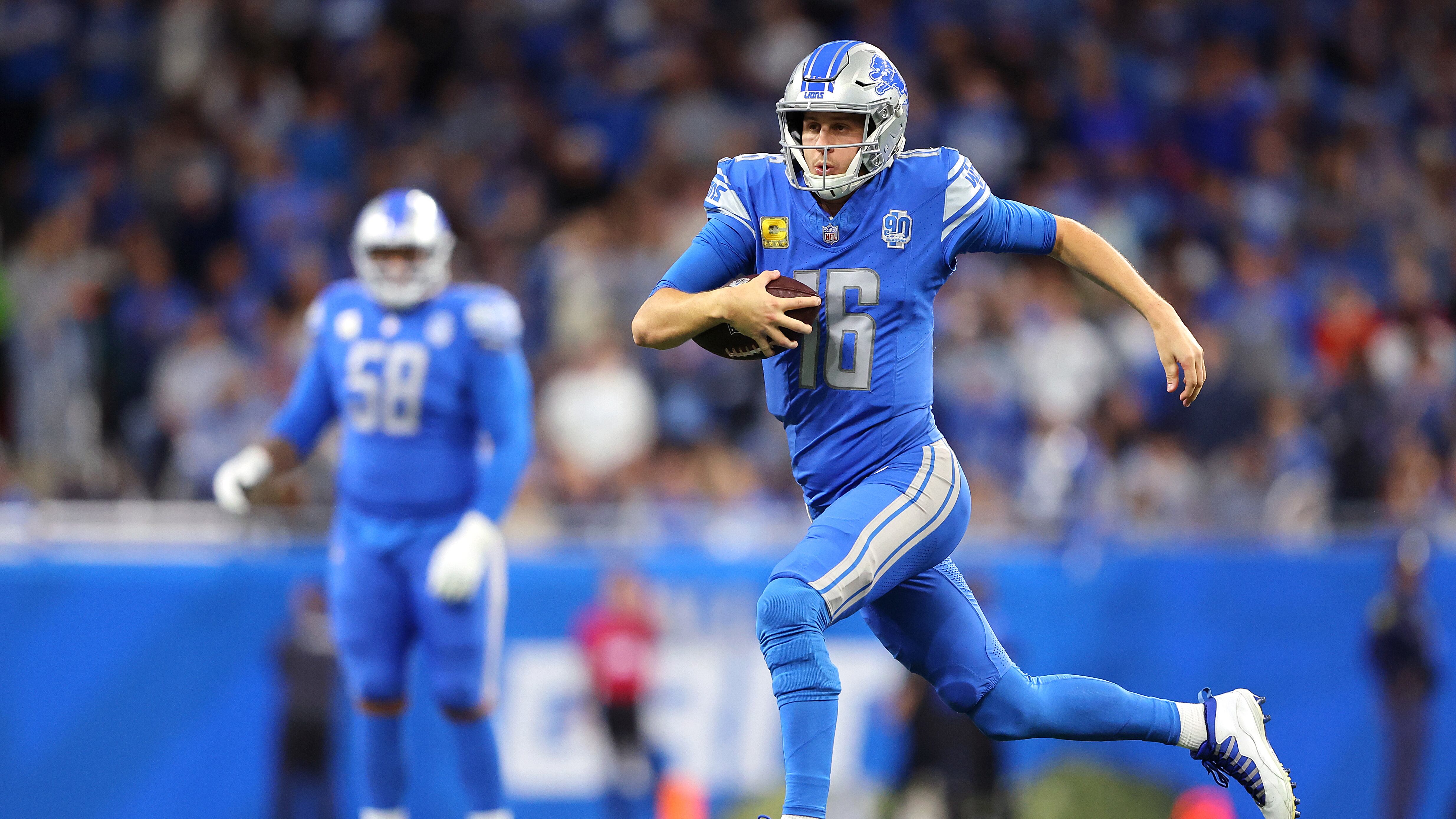 Goff finished the day throwing 23-of-35 for 236 yards with two touchdowns and three interceptions in the win. Montgomery had 76 rushing yards and a touchdown on 12 carries, and St. Brown had 77 yards on eight catches.