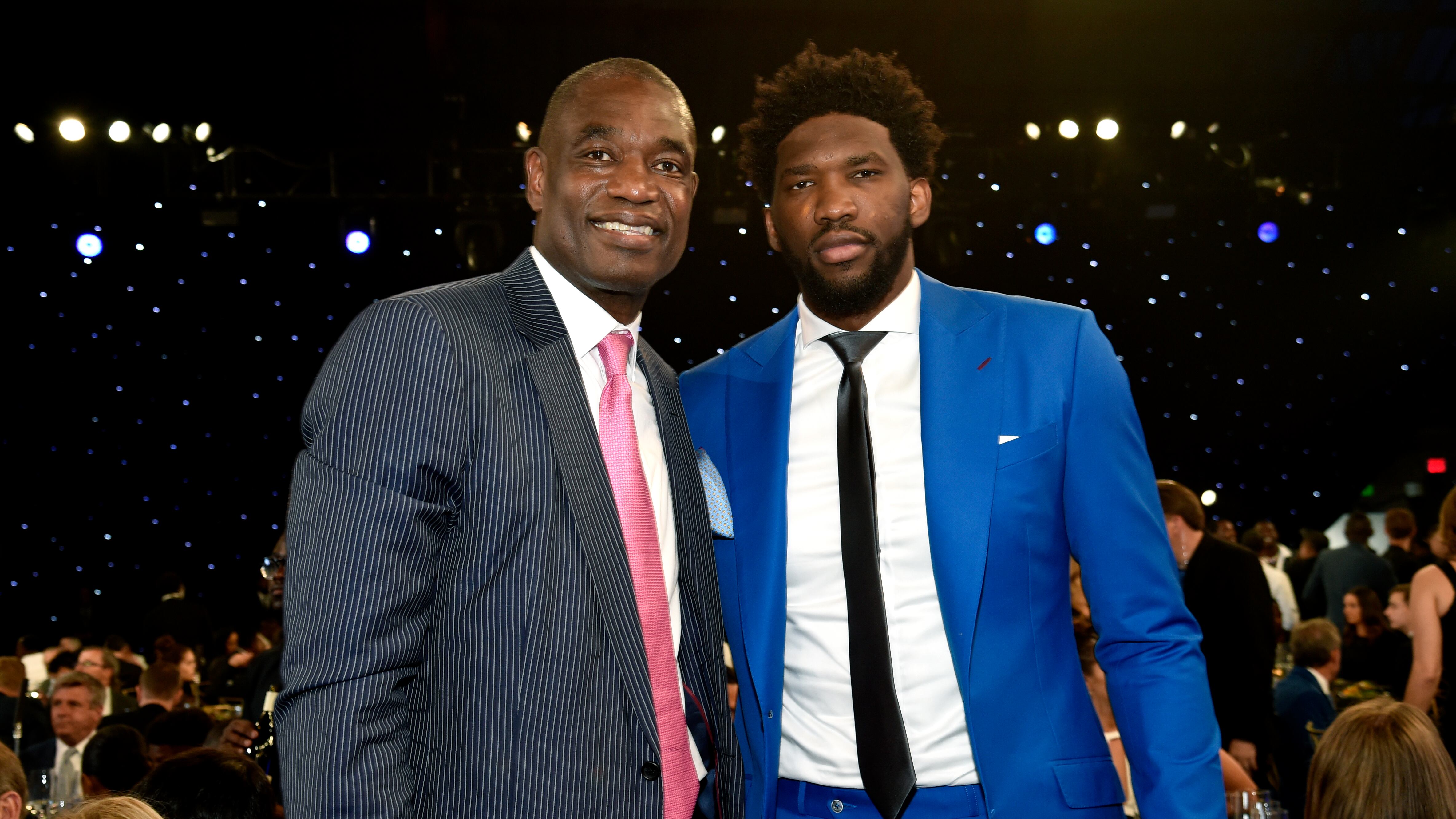 2018 NBA Awards - Inside SANTA MONICA, CA - JUNE 25: Dikembe Mutombo (L) and Joel Embiid attend the 2018 NBA Awards at Barkar Hangar on June 25, 2018 in Santa Monica, California. (Photo by Kevin Mazur/Getty Images for Turner Sports) (Kevin Mazur/Getty Images for Turner Sports)