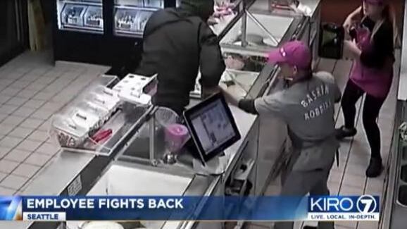 The suspect then turned back and jumped over the counter, and the employee who opened the register fought off the suspect, who then fled.