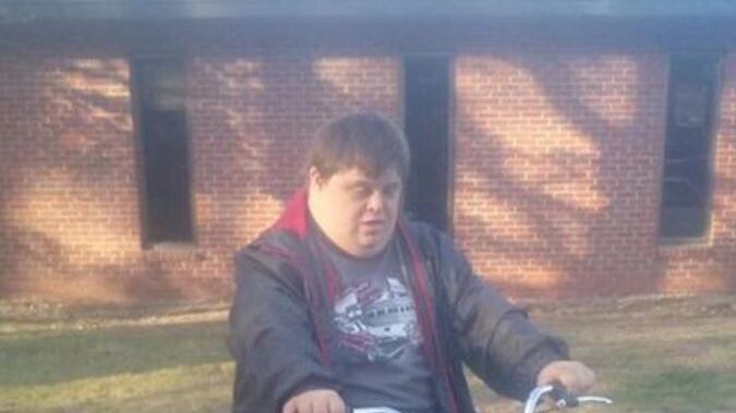 Jeffrey Croteau, 37, rides his beloved blue adult tricycle with his father every Sunday.