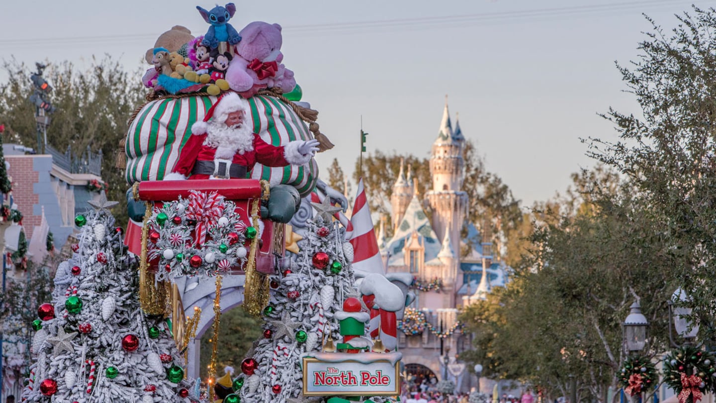 ORANGE COUNTY, Calif. — Good thing Santa is used to shimmying down a chimney. His rosy outlook and his comfort with heights came in handy when a float failed during an afternoon parade at Disneyland.