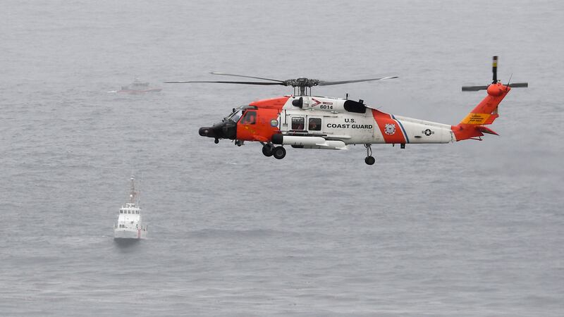 Photos: 4 dead after boat capsizes off San Diego in suspected human smuggling incident A U.S. Coast Guard helicopter flies over boats searching the area where a boat capsized just off the San Diego coast Sunday, May 2, 2021, in San Diego. (AP Photo/Denis Poroy)
