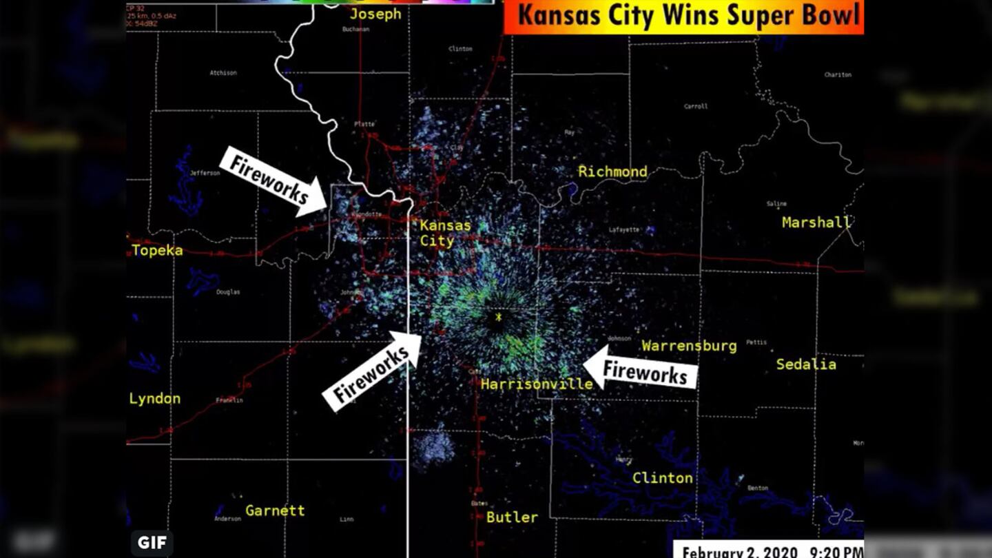 The NWS sent out a tweet overnight with the radar showing the fireworks explosions, KCTV reported.