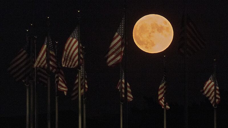 Photos: Sturgeon Moon 2022, year's last supermoon, lights up the night sky The moon rises behind United States flags at the base of the Washington Monument on August 11, 2022, in Washington, D.C. The so-called Sturgeon Moon is the fourth and final supermoon of 2022. (Chip Somodevilla/Getty Images)