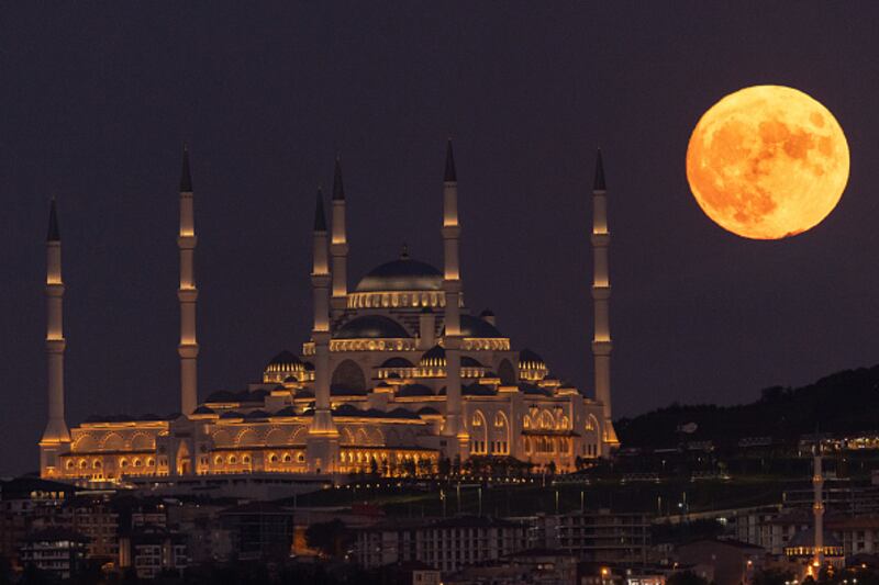 Photos: Sturgeon Moon 2022, year's last supermoon, lights up the night sky The Sturgeon Moon rises next to Istanbul's Camlica Mosque on August 11, 2022, in Istanbul. The Sturgeon Moon is the last supermoon of 2022. (Chris McGrath/Getty Images)