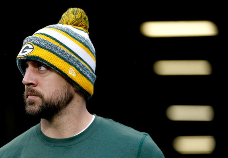 Through the years Aaron Rodgers #12 of the Green Bay Packers warms up prior to the start of the game against the Detroit Lions at Ford Field on December 29, 2019 in Detroit, Michigan. (Photo by Leon Halip/Getty Images) (Leon Halip/Getty Images)