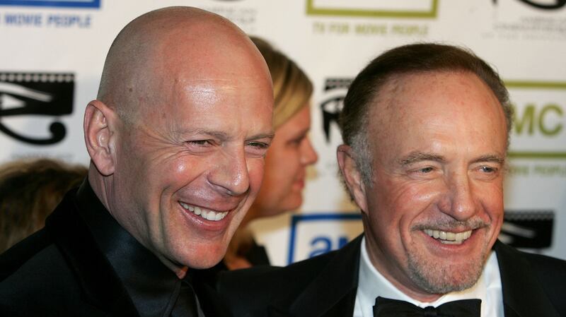 2005 BEVERLY HILLS, CA - OCTOBER 21: Actors Bruce Willis and James Caan arrive at the 20th Annual American Cinematheque Award Honoring Al Pacino at the Beverly Hilton Hotel on October 21, 2005 in Beverly Hills, California. (Frazer Harrison/Getty Images)