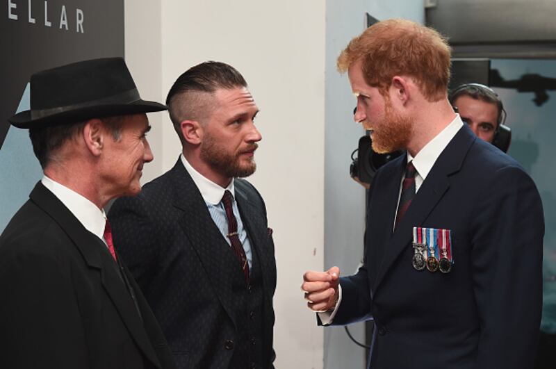 Photos: Tom Hardy through the years 2017: Prince Harry (right) and actors Mark Rylance (left) and Tom Hardy (center) attend the "Dunkirk" World Premiere at Odeon Leicester Square on July 13, 2017, in London. (Eamonn M. McCormack - WPA Pool/Getty Images)