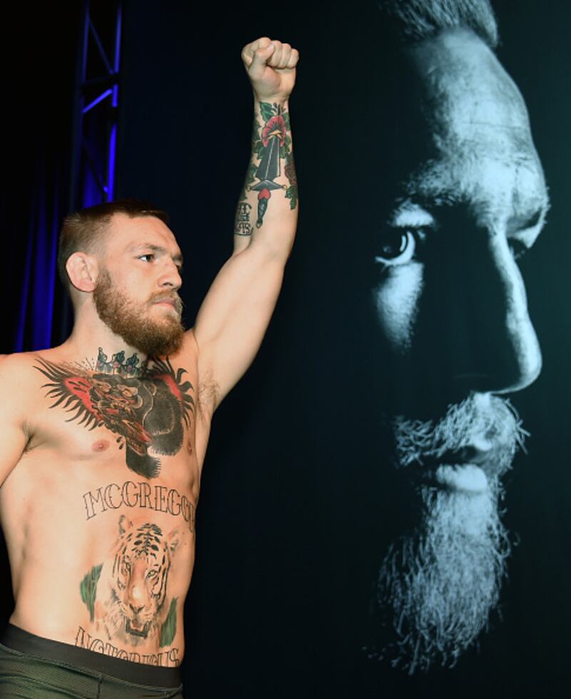 Conor McGregor through the years 2017: UFC lightweight champion Conor McGregor poses on the scale during his official weigh-in at T-Mobile Arena on August 25, 2017 in Las Vegas, Nevada. McGregor will meet boxer Floyd Mayweather Jr. in a super welterweight boxing match at T-Mobile Arena on August 26. (Photo by Ethan Miller/Getty Images) (Ethan Miller/Getty Images)