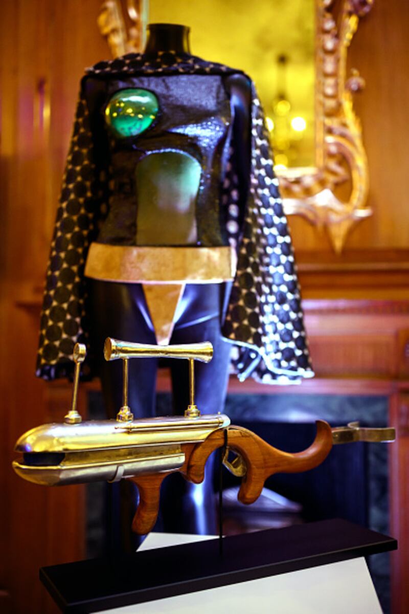 Propstore auction LONDON, ENGLAND - AUGUST 06: A futuristic rifle (estimated sale price of $20,000-40,000) and screen-matched costume ($20,000-40,000) from the film "Barbarella" are displayed at a photocall ahead of an auction of entertainment memorabilia by Propstore, on August 06, 2025 in London, England. The bullwhip is among several iconic film memorabilia that will be going to auction in Los Angeles in September, alongside the screen-matched lightsaber prop, used by the character "Darth Vader" in the Star Wars films "The Empire Strikes Back and "Return Of The Jedi",' and Sauron's Helmet from, 'The Lord of the Rings.' (Photo by Leon Neal/Getty Images) (Leon Neal/Getty Images)