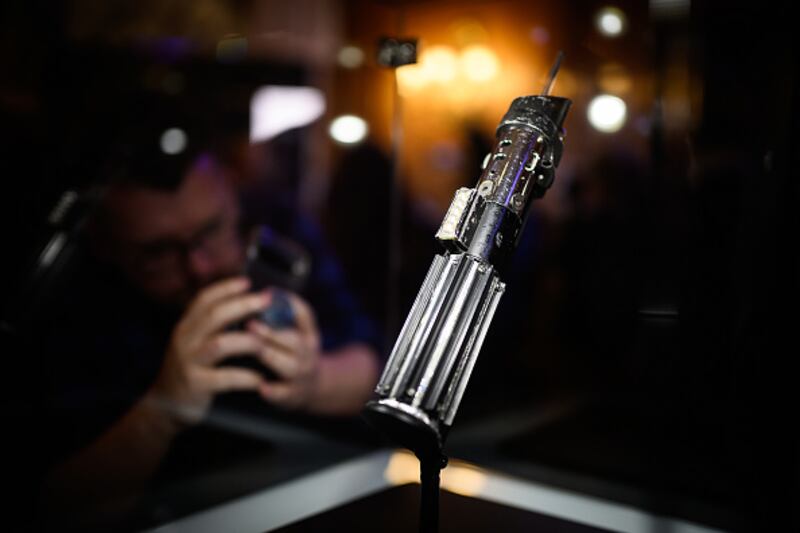 Propstore auction LONDON, ENGLAND - AUGUST 06: The screen-matched lightsaber prop, used by the character "Darth Vader" in the Star Wars films "The Empire Strikes Back and "Return Of The Jedi", is displayed at a photocall ahead of an auction of entertainment memorabilia by Propstore, on August 06, 2025 in London, England. Darth Vader's 'Hero Dueling Lightsaber,' featured in 'Star Wars: The Empire Strikes Back' and 'Return of the Jedi,' (estimated sale price of $1,000,000-$3,000,000) is among several iconic film memorabilia that will be going to auction in Los Angeles in September, alongside Indiana Jones' bullwhip and belt from 'Indiana Jones and the Last Crusade,' and Sauron's Helmet from, 'The Lord of the Rings.' (Photo by Leon Neal/Getty Images) (Leon Neal/Getty Images)