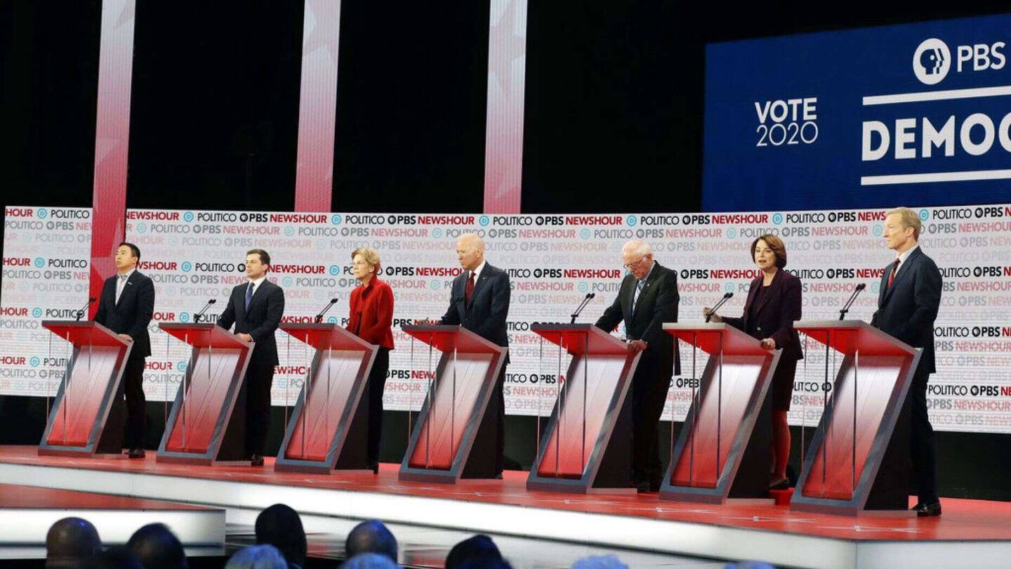 LOS ANGELES — Seven candidates took the stage in Los Angeles on Thursday night for the sixth Democratic presidential primary debate, including former Vice President Joe Biden; South Bend Mayor Pete Buttigieg; Sen. Amy Klobuchar, D-Minn.; Sen. Bernie Sanders, I-Vt.; businessman Tom Steyer; Sen. Elizabeth Warren, D-Mass.; and entrepreneur Andrew Yang.