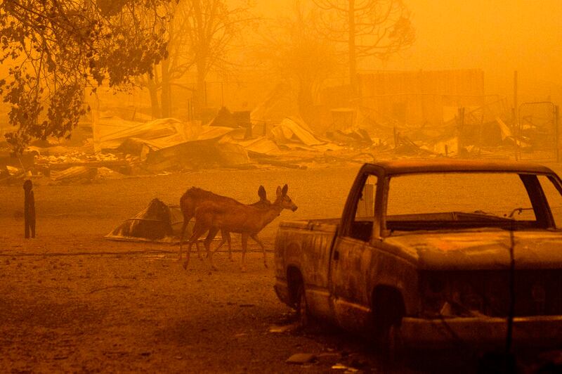 Dixie Fire becomes 3rd-largest in California history Deer wander among homes and vehicles destroyed by the Dixie Fire in the Greenville community of Plumas County, Calif., Friday, Aug. 6, 2021. (AP Photo/Noah Berger) (Noah Berger/AP)