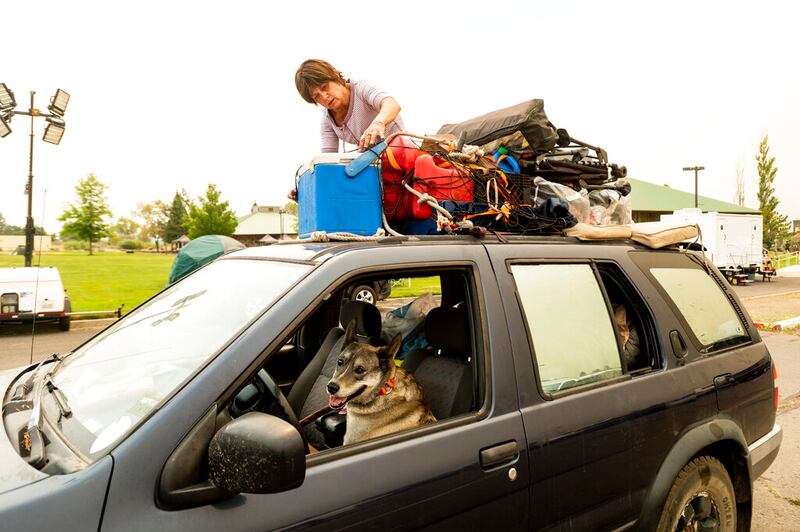 Dixie Fire becomes 3rd-largest in California history Greenville resident Kesia Studebaker, who lost her home to the Dixie Fire, secures belongings before leaving a Susanville, Calif., evacuee shelter with her dog Logan on Friday, Aug. 6, 2021. "I lost everything. This is all I've got," said Studebaker adding "It's a new beginning, a new adventure." She was heading out to stay with friends nearby. (AP Photo/Noah Berger) (Noah Berger/AP)