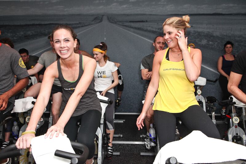Photos: Former first daughter Barbara Bush through the years 2012: Barbara Bush (left) and Jenna Bush Hager (right) host SoulCycle charity ride to benefit the Global Health Corps on February 29, 2012, in West Hollywood, California. (Chelsea Lauren/WireImage/Getty Images)