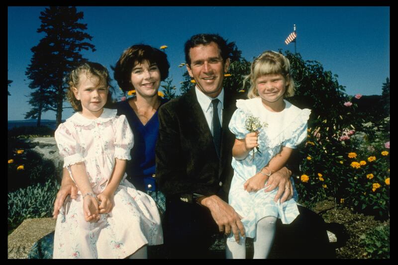 Photos: Former first daughter Barbara Bush through the years 1987: Barbara, Laura, George W. Bush and Jenna. (Robert Daemmrich Photography Inc/Sygma via Getty Images)