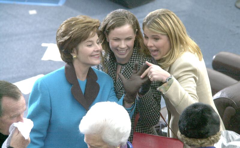 Photos: Former first daughter Barbara Bush through the years 2001: First Lady Laura Bush with daughters Barbara and Jenna at Inaugural ceremonies on the west side of the US Capitol building. (Greg Mathieson/Mai/Getty Images)