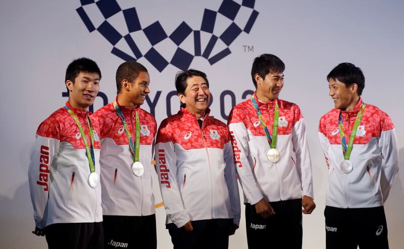 Abe was holding his chest when he collapsed, with his shirt smeared with blood, according to the AP.