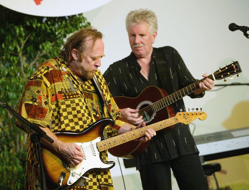 Photos: Graham Nash through the years 2004: Musicians Stephen Stills and Graham Nash perform at Rock the Vote's "The Last Mile Acoustic Concert" at the Crossroads School on October 27, 2004, in Santa Monica, California. (Kevin Winter/Getty Images)
