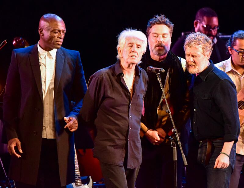 Photos: Graham Nash through the years 2018: Seal (left), Graham Nash, Rufus Wainwright and Glen Hansard perform onstage at JONI 75: A Birthday Celebration Live at Dorothy Chandler Pavilion on November 7, 2018, in Los Angeles. (Rodin Eckenroth/Getty Images)