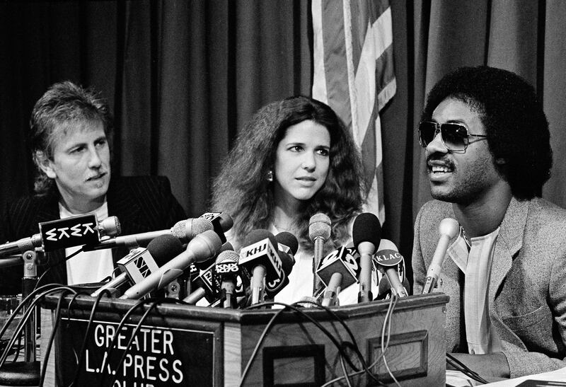 Photos: Graham Nash through the years 1982: President Reagan's younger daughter, Patti Davis, and musicians Graham Nash, left, and Stevie Wonder, call for a freeze on the manufacture of nuclear weapons at a news conference in Los Angeles on May 19, 1982. (AP Photo/Doug Pizac)